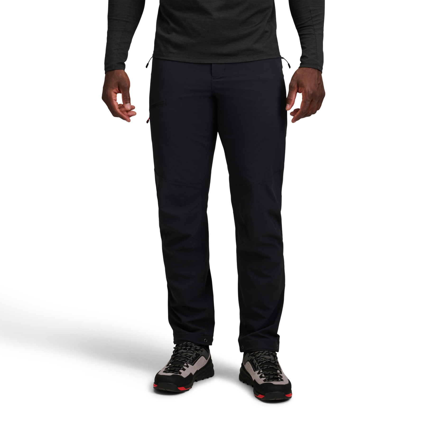 W kolekcji nie zabrakło także spodni Alpine Pants, które łączą trwałość z gwarancją dużej swobody ruchu. Wykonane z materiału o czterokierunkowym rozciągu oraz wzmocnione w newralgicznych miejscach tkaniną ripstop, dobrze poradzą sobie zarówno podczas stromych podejść, jak i długiego marszu w zmiennym terenie. Kieszenie zapinane na zamek pozwalają bezpiecznie przechowywać najpotrzebniejsze drobiazgi, a wykończenie DWR wolne od PFC zwiększa odporność materiału na wilgoć i przelotne opady. Regulowane nogawki umożliwiają natomiast precyzyjne dopasowanie spodni do obuwia.