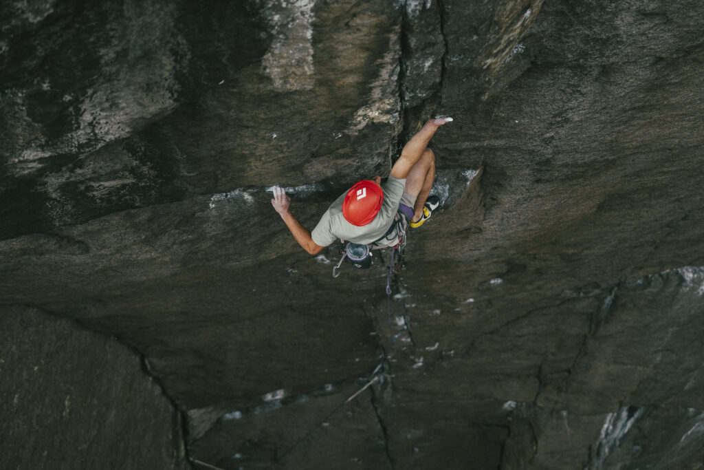 Recovery Drink idealnie pasuje do jego sposobu wspinania — łączy ruchy znane ze wspinania sportowego z koniecznością samodzielnego osadzania asekuracji. To właśnie w takich drogach najlepiej widać, jak coraz bardziej przenikają się różne style.