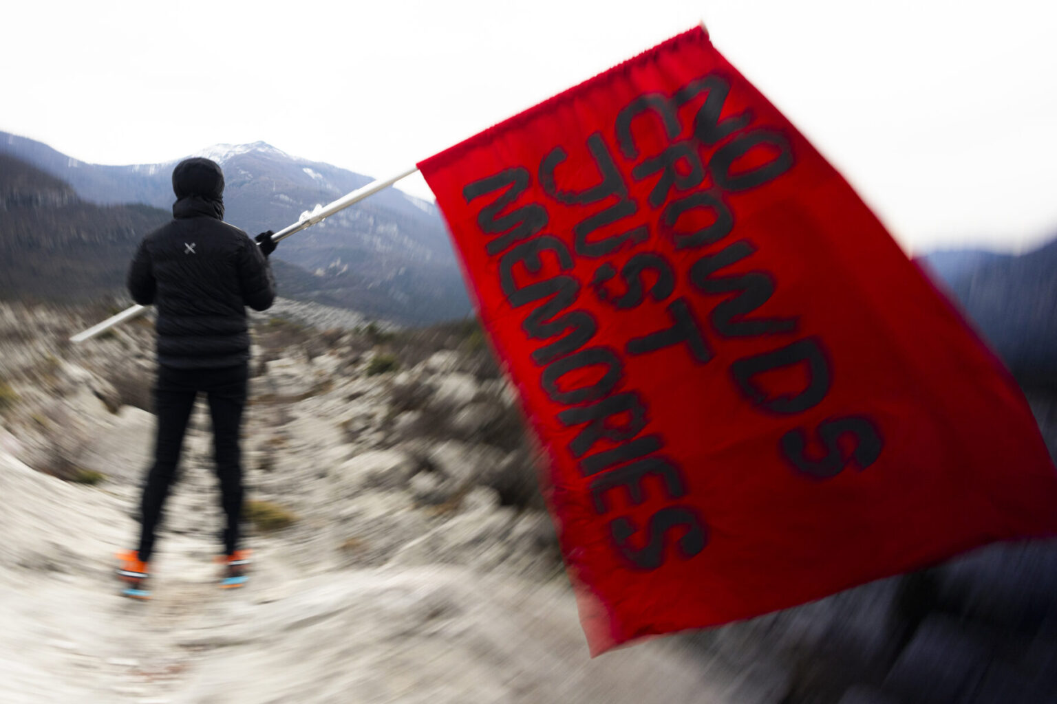 Lucio Schiavon przygotowujący flagę kampanii „No Crowds, Just Memories” – Fot. Bank zdjęć marki Montura „No Crowds, Just Memories„